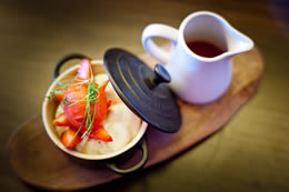 "The Charlotte’s Bistro Set Lunch Menu is available at the bargain price of £12.95 and £15.95 for two and three courses respectively so as much as we’d like to we have to avoid traditionally pricey ingredients like lobster, oysters and truffles. Firm favourites on our set lunch menu are our chicken liver parfait with homemade brioche and Macken’s bavette steak with home cut frites and bearnaise; so they are off limits as entries, sorry!