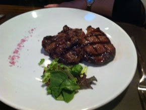 The menu also contains several Argentinian specialities. These include starters of Empanadas, a traditional savoury pastry filled with either beef, ham and cheese or humita (creamed corn). There is also an Aubergine Escalope with Goats Cheese which would be a good vegetarian option. There are crispy sweetbread croquettes ( Mollejitas Crocantes) and Morcilla, a black pudding. You can have a platter of sausage with malamado and mint as a starter if you like.