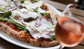 The pizzas were the main event. I had funghi porcini, a tomato base with proper porcini mushrooms, tasting deep and dark just like they should. My companion had pizza pucinella with mozzarella, spinach, goat cheese, sun-dried tomatoes and pancetta. It was all just as it should be, thin based crispy pizza with generous tasty toppings. One of them was a tad burnt, but after being in that pizza oven, perhaps it’s not surprising. It was still delicious. To go with it we shared a wild rocket salad with parmesan shavings. There’s a big choice of pizzas offering all sorts of combinations, with plenty for vegetarians. And they come in two sizes, single which is 12 inches in diameter and half a meter if you’re starving or sharing.
