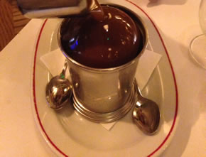 The dessert menu continues the American theme with offerings such as Pecan Pie, Blueberry and Apple Cobblerr, Cheesecake or Melted Marshmallows. I opted for the Melting Chocolate Sundae. This comes in a little bowl with a hard chocolate shell on top over which you pour butterscotch sauce which then melts into the cup. This appeals to the child in me as I like to watch the chocolate shell collapsing into the vanilla ice cream - we got two spoons and soon demolished the dessert.