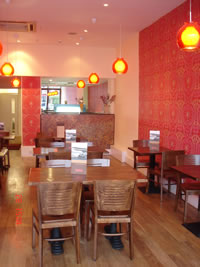 In the blurb on the menu and their website Karma declares itself to be ‘cool and contemporary and offering good quality healthy Indian cuisine.’ Judging by our experience that’s pretty close to what they have achieved. Our food was light, low fat and delicious. It’s also a nice place to sit in - the decor is a sophisticated mix of subdued red and lemon with smart wooden furniture and squashy sofas with a low table for people who come in for a snack or a drink while they wait for their take-aways.