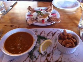 Other cold starter choices include Taramasalata, Tabbouleh,( chopped parsley salad) Cacik (yoghurt with cucumber and mint, Zeytin Yagli Sarma (stuffed vine leaves) or Yogurtlu Bakla (broad beans with yoghurt, peppers and dill. The hot hot starters included Kalamari, Falafel, Sucuk (spicy sausage), or Ispanakli (filo pastry filled with feta cheese and spinach).