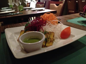 Other starters include familiar sounding (but maybe not familiar tasting) dishes like vegetable samosas and chicken tikka shashlik, as well as the unusual, such as gilafiseek lamb (minced lamb wrapped in fresh aromatic vegetables combined with ginger and spices), methi machehi tikka (fresh salmon marinated in spicy yogurt and cooked with fenugreek leaves) and jangli maans ke sule (flattened lamb marinated with crushed spices and cooked on an open fire).