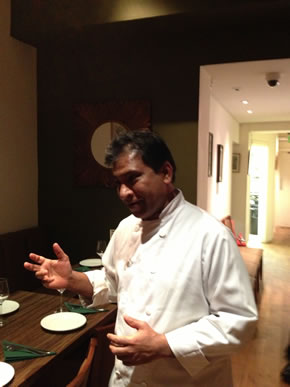 Cooking is in the very capable hands of head chef Dilshad Bhadur, (pictured above) who has cooked in some very smart venues all over the world. This includes the Intercontinental Hotel in Jordan, where he catered for a number of dignitaries including the King of Jordan and Bill Clinton. Now (lucky us) he’s brought his skills to Chiswick, where he aims to change the way we think about what he says is ‘true Indian cooking’.