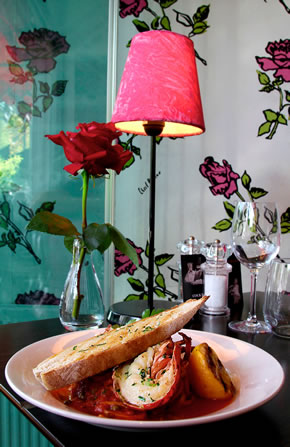 The website describes the decor as “ luscious, a destination for food with passion and glamour”. Other reviewers have used adjectives such as "opulent, gothic, punk-glam, eclectic, decadent, quirky, whimsical, funky and sparkly". The word seductive is frequently used, giving the impression of being the perfect place to bring a husband, wife, or even lover....