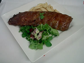 After we had finished up, our main courses arrived. I chose the half rack of ribs, and Emmett went for the Half Chicken, with Barbeque sauce, although you could also opt for Piri-Piri if that took your fancy. Both were served with a fresh Salad and fluffy, fat chips. Again, they were both remarkably good, although I think the ribs were better, meat that fell off the bone and melted in your mouth. This was the one place we disagreed in our entire meal, with Emmett insisting his chicken was tastier! Both plates were soon cleared and my only regret was not ordering the full rack, although, already bulging, my stomach might have disagreed.
