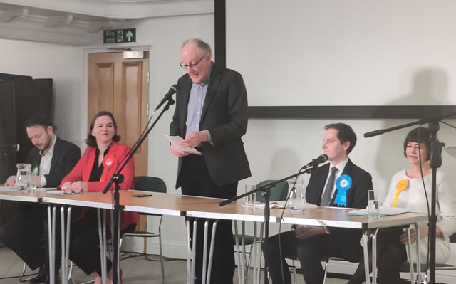 The candidates statements were followed by a 12 minute session for each answering questions from the floor. These ranged from general topics such as the climate emergency through Brexit to local issues and included questions around tactical voting.