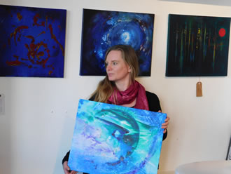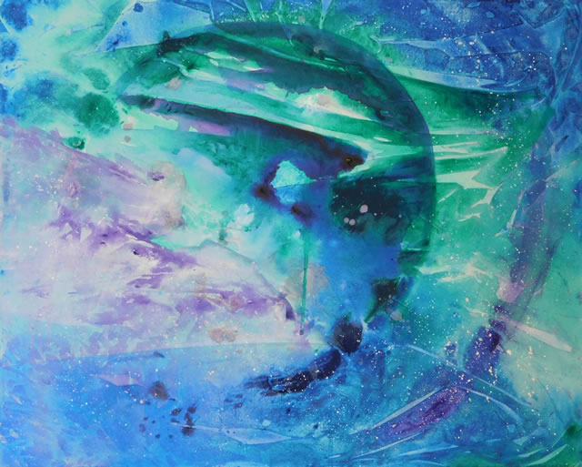 An exhibition of cosmic and abstract paintings at Putney Arts Theatre until Easter