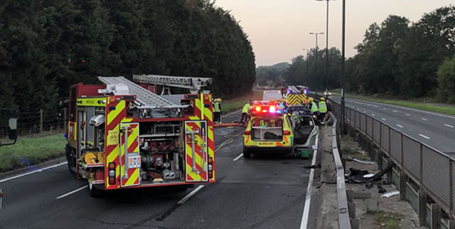 The A3 was closed off on the southbound carriageways after the police were called at around 5.45am this morning (1 September), to reports of a collision between two cars on the A3 near the junction with the A238, beyond Robin Hood roundabout.