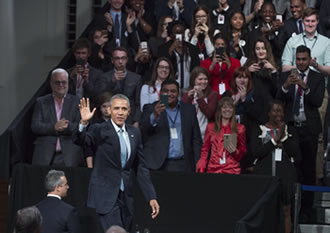 The students were selected after the American Ambassador, Matthew Barzun spoke to the academy’s Sixth Form and was so impressed by their questions and passion for global politics that he invited them to meet Obama. Maia Drummond, William Iheji, Rosalee Henry, Xavier Bailey and Francini Nuernberg all had the chance to hear Obama speak and then deliver an extended question and answer session with a range of young people from schools and universities all over the country.