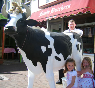 Surprisingly we still get new customers coming in saying that they did not know we were here! Action was taken and Buttercup joined our ranks, which has been nothing short of a sensation! She is loved by many, sending children wild with excitement as they pass by. Buttercup, our life size model of a Frisian cow has put us on the map and we are delighted with her! Her acquisition was a serious investment to help a small business survive these difficult times. Perhaps even an educational tool relevant to the product in the business and adding a little humour to the street! We hope you agree. |