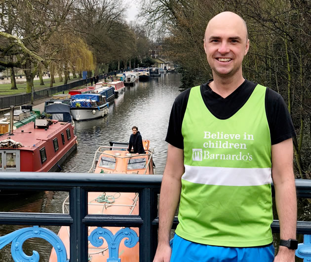 Brad Owens, who is employed by Dolphin Dynamics on the Upper Richmond Road adopted two children through Barnardo’s and was determined to complete the Virgin Money London Marathon to raise funds for the charity, despite his condition..