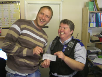 Nicky has been working with Regenerate in Roehampton for the last year. She is a familiar face at their sessions meeting and helping local people. Andy Smith from Regenerate receiving the cheque from PCSO Nicky Edwardes |