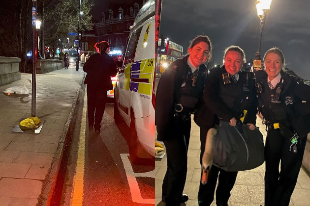 The swan was secured with specialist equipment provided by the Bird Rescue team of London Wildlife Protection and, along with the police officers, they managed to get it to a place of safety.