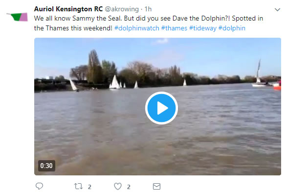 Earlier video of the dolphin by Putney Auriol Kensington Rowing Club @akrowing
