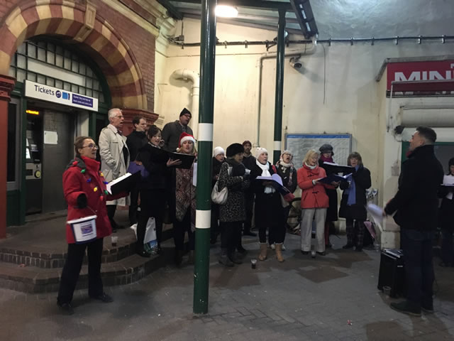 Carols outside East Putney Station