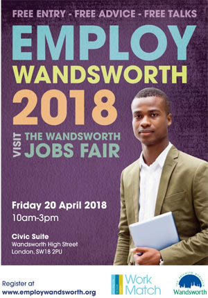 The Employ Wandsworth careers fair is returning to the Town Hall on Friday 20 April, with dozens of companies offering hundreds of job opportunities. Organised by the Council’s Work Match team, the event is for people who live in Wandsworth and are returning to work, want a job closer to home or with more hours, want to step up a level or need help finding the right career. Visitors can find out about job opportunities, talk to employers, get expert guidance on CVs, career development and starting a business, and find out about training to boost their skills. About 1,000 people attended last year, and this year’s event is expected to be even bigger.