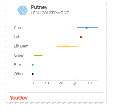 This chimes with the recently released polling information from YouGov which is the most comprehensive study of the election on a constituency by constituency basis. This suggested that Putney was ‘leaning Conservative’ but with both the Tories and Labour having a percentage share of the vote in the thirties with the Liberal Democrats getting low twenties and Fergal McAntee for the Greens getting a low single digit share.