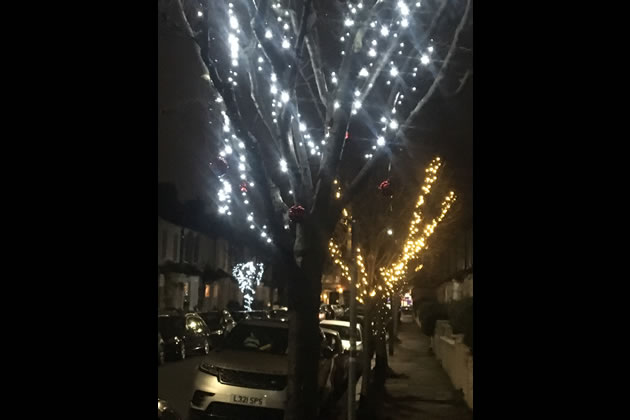 For the third year in a row all 22 trees in Festing Road have been decorated. Baubles, coloured and flashing lights are the order of the season.
