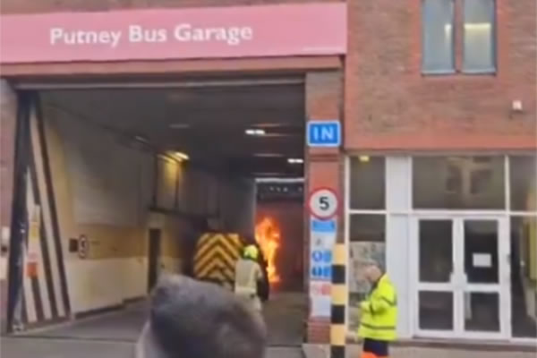 A spokesperson for Transport for London said, "Putney bus garage was partially closed following a fire on a bus. No one was on board the bus at the time and it was extinguished quickly.