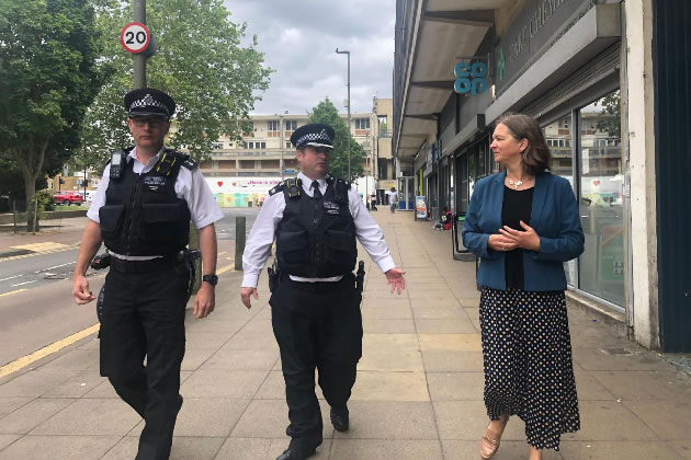 Fleur Anderson goes on walkabout in Roehampton with local officers