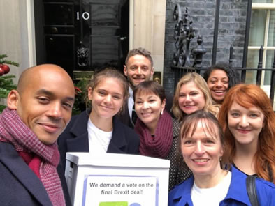 • Handed in a petition of over a million signatures to 10 Downing Street asking for a People's Vote on the proposed route forward on Brexit.