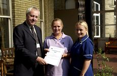 Debbie (centre) recieves award from ) David Monkman, Chief Nurse and Caty Atrill, Wolfson Ward Sister. | Debbie, who currently works on Wolfson Ward with Huntington's disease patients, has worked at the Royal Hospital for over 14 years. She is well known to patients, relatives and staff for her energy, great sense of humour and the genuine care she shows to patients. |