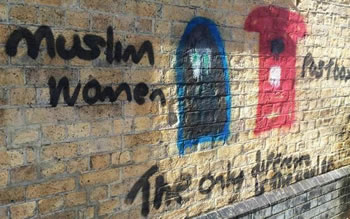 An Islamophobic mural likening Muslim women to postboxes has been scrawled across the side of a business in West Putney.