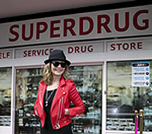 (Lulu outside the 60s-style Superdrug in Putney)