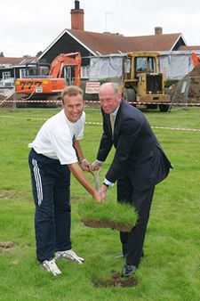 First turf cut as David Felgate the Performance Director & Charles Trippe the President of the LTA start the building procedure
