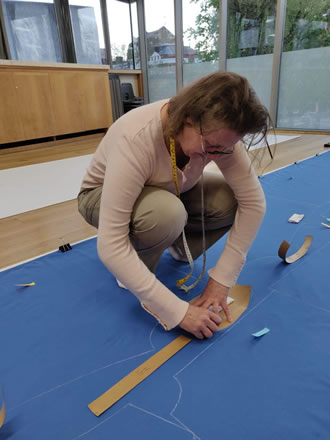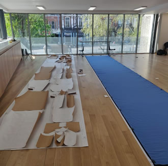 Rosie Taylor-Davies is a New Zealander living in Putney with a background in design, garment production and development from the London College of Fashion, Central St Martins College of Art and Design to name a few of her qualifications. She is currently found on her hands and knees cutting thousands of pieces of fabric for the volunteers! The organisers would especially love to hear from you if you are a garment maker or professional in the industry who could help Rosie (pictured above) with the laying out and cutting - she bulk cuts using an electric rotary cutter.