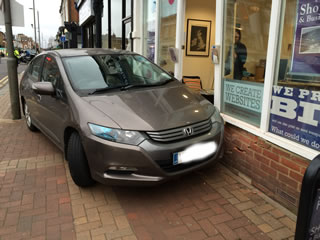 The driver has found her shoelace had got stuck around the accelerator and she could not stop the car - the Lower Richmond Rd was busy with early evening traffic and pedestrians, rather than swerve into other cars or cyclists on the road she mounted the pavement and missing the lamppost came to a halt along the front of Putney Printing.