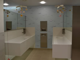The new customer toilets complete with state-of-the-art Baby Care Suite were one of the first major milestones in the redevelopment of the Putney Exchange. The recently opened facilities include a separate baby changing zone and dedicated feeding area with specially designed breastfeeding chairs, bottle warmers, side tables and overhead mobiles. There are three changing areas complete with integral soap and hand basins and two spacious family cubicles which allow mum or dad to use the facilities together without having to split up – a feature often requested by families with young children. The toilets and sinks are provided at low level for little ones and specialist toy retailer in the centre, Toystop, has contributed a Bead Table to keep younger members amused. In the main area, there are energy efficient hand driers, lighting sensors to save on electricity when not in use and sensor taps/soap dispensers designed and included to keep waste to a minimum and reflect the Centre’s commitment to carbon reduction and future sustainability.