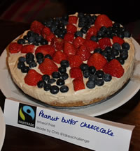 The members are diverse in make up; from local students in Southfields, one mum of three who commutes in from Surrey as nothing similar is available locally and refreshingly and dare I say surprisingly two men! I met Chris (pictured above left) who had never baked before but after four trips to Putney High St to buy scales, ingredients and a cake tin he produced an amazing wheat free peanut cheesecake that would have looked at home at any jubilee street party last summer (pictured above right)!