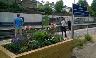 Dr Luke Dixon at The Bee Friendly Trust told this website, "The planters at Putney Station were the first of what is becoming a nationwide project. We wanted to help the bees in the area have somewhere to forage for nectar and pollen, and we wanted to brighten up the commute for the many passengers who use the station everyday. It has been a great success and we get many happy messages from travelers who appreciate their usefulness and beauty".