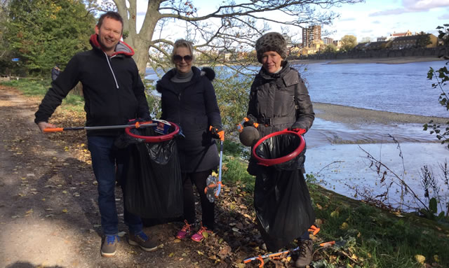 Helping the Putney Tidy Towpath volunteers along the Thames towpath