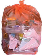 The orange sacks can be used for paper, card, glass, cans and plastic bottles.