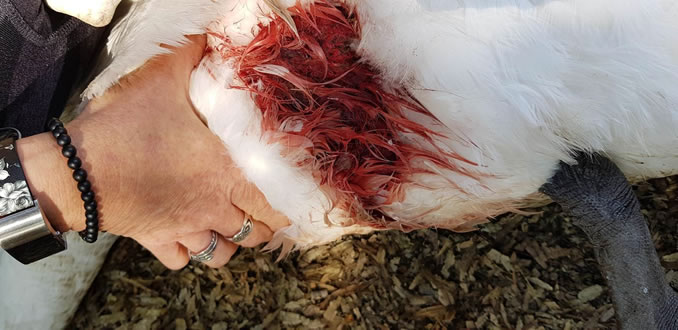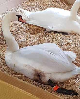 The five-year old swan is currently recovering at the Swan Sanctuary and is on antibiotics but will not be strong enough to be released for some weeks yet.