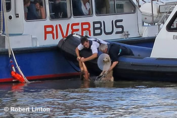 A Port of London rescue boat had been called and with the help of the crew of the riverbus hauled the two from the water.