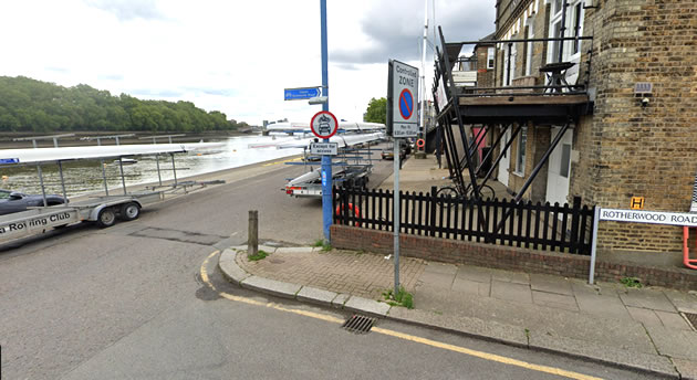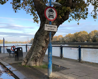 Vehicles are only supposed to use the section of Putney Embankment between the Thames Rowing Club and Vesta Rowing Club boathouses if they stopping or parking outside one of the homes or at one of the boathouses.