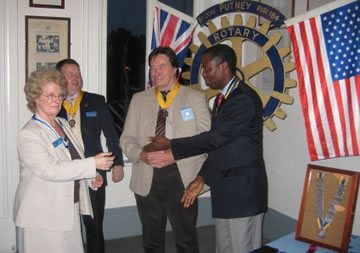 Segun Sokoya (right), elected President of the Rotary Club of Putney for the new Rotary year (2007/08), welcomes his new team at his inauguration on 2nd July.