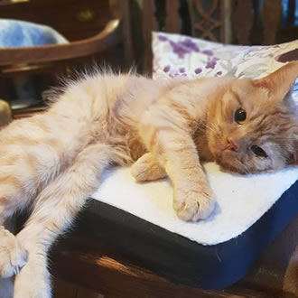 Once he was on the mend, Saul moved to the charity’s Southall Cattery where Christina Thomas and her family came to meet him. Christina said: “My daughter had seen the news about Grumpy Cat and sent me the photo of Saul looking out of the door at Putney, my exact words were: ‘Oh I could love him. My son-in-law traced him to Southall and we went to meet him the next day. My husband and I knew we could give him a new home.”