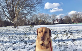 ![]() PutneySW15's lab loving a frozen snow/tennis ball found on the common |