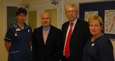 The Health Secretary inside the MITC with Tony Colman, John Reid, Sarah-Jane Anscomb, Clinical Nurse Manager and Carol Ayres, Emergency Nurse Practitioner. |