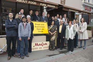 | Cllr Maurice Heaster and Cllr Ravi Govindia with local traders on the Upper Richmond Road. |