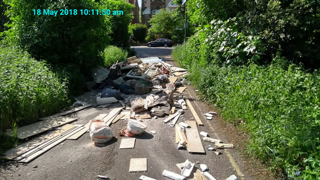 An appeal is being made for witnesses after a major flytipping incident on Willow Farm Lane off the Lower Richmond Road in Putney. A significant amount of material from what looks like a domestic construction site has been dumped on the road. There was so much dumped that the road was completely blocked.