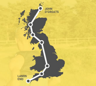 James will start in Lands End in Cornwall and end in John o' Groats in Scotland. Key places he will pass through or nearby include: