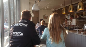 Whilst we took on our opposing colours I sipped a glass of rose in the spring sunshine whilst Jo had a rooibos tea - the menu has so much more to offer and if you go with a gaggle of friends you can take over the basement area and let your hair down over a bottle or two .........