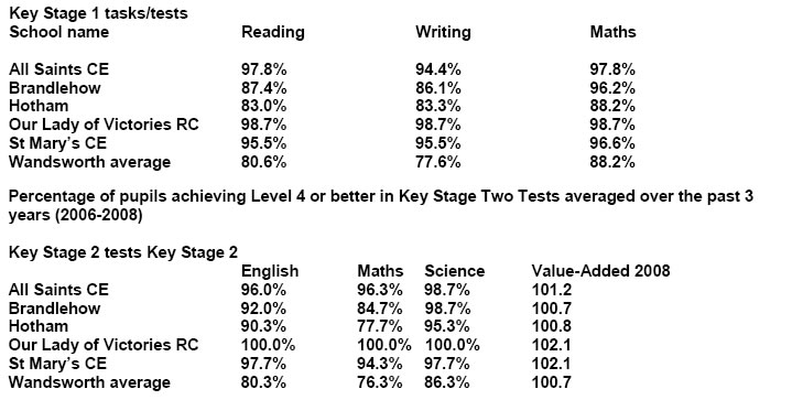 Their admissions criteria are published on their respective websites www.allsaints.wandsworth.sch.uk, www.stmarysschoolputney.co.uk and www.ourladyofvictories.wandsworth.sch.uk and in the online directory*. There are two community (non-church) schools, Hotham and Brandlehow, www.brandlehow.ik.org.