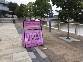 People enjoying the River Thames in Putney are being reminded not to leave litter behind thanks to eye catching bins and posters. The posters are located in Putney Wharf where there is a large central bin plus a further large bin on the Embankment by Beverley Brook.